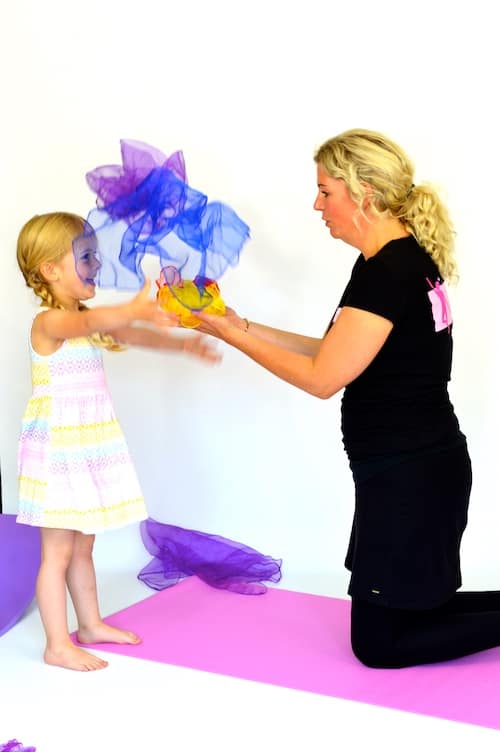 Doormiddel van muziek, muziekspelletjes, dansjes, muziekmateriaal, yoga houdingen speel ik als kinderyoga dans juf spelenderwijs in op de beleving wereld van het kind
